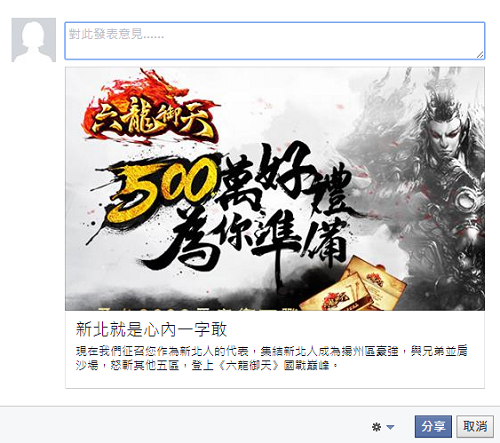 step3、分享至Facebook,正式完成報名,成功後會提示成功加入XX戰隊。