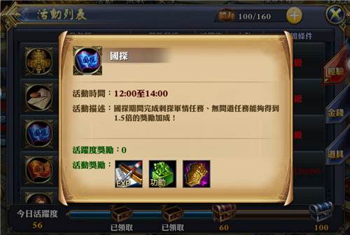 這兩個任務是少俠後期升級的主要經驗的來源,而除了經驗之外,這兩個任務也能夠給少俠帶來豐富的功勳哦,是提升爵位的主要方式,關於國探和國運時間不要搞錯,不要在非國探國運期間去做刺探軍情、套取情報和護送鏢車、邊境軍需這四個任務,這點一定要注意的喲。