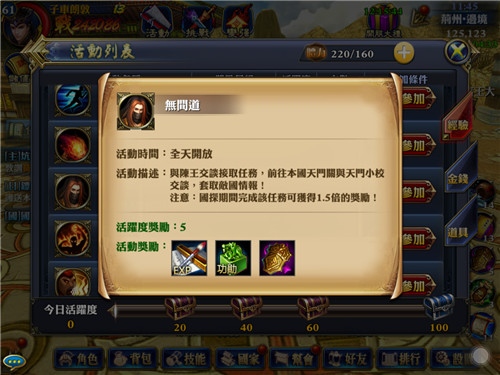 而在遊戲日常活動上,如押送糧草、火燒敵營、刺探軍情等內容也是趣味多多,每一個活動的玩法都很契合國戰的主題。