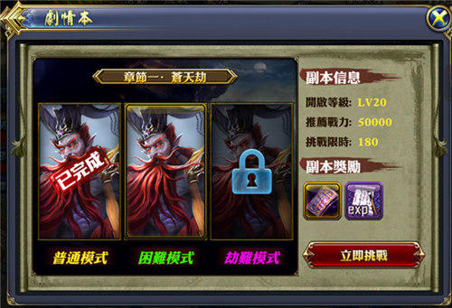 副本的種類多樣,玩法各不一樣,比如劇情本,分為三個難度,每個難度對應的人物等級戰力不同,當完成三種難度後,可開啟下一章的內容,當然在難度挑戰中,獎勵內容也會由低到高,十分具有吸引力。而向長板橋這樣的經典戰役,讓人有種一夫當關萬夫莫開的感覺,暢爽刷怪的同時經驗拿到手軟。