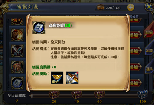 第二個方法就是商會跑環(週)。在商會跑環介面接取任務和獎勵,完成任務後可獲得大量的銀子和經驗,一週有200次,如果少俠平時時候不是很充足的話,可以在一週內空閒的時間做哦。