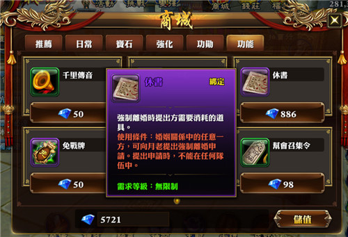 目前休書道具只有在商城購買,需要的少俠可以去商城購買一下。