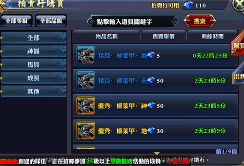 1)拍賣行可用鑽石為非綁定鑽石;