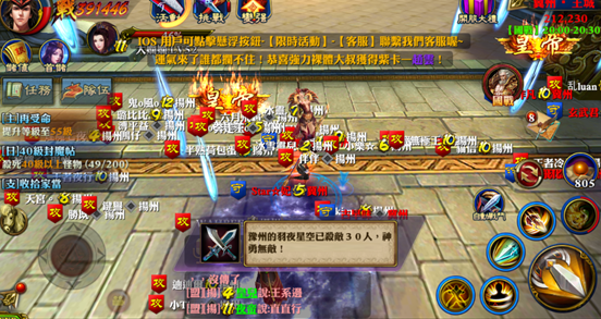 由於祭司還沒被打掉,所以王城裡面的守護神還是無敵的。剛到不久,大將軍“古歌”就發出國戰召集。小編跟隨大家被傳送到了皇帝“半熟荷包蛋”旁邊。我們在這裡遇到了冀州皇帝“夢非凡”帶領的防守軍。