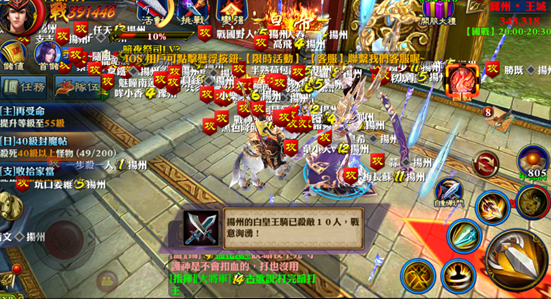 經過一番奮戰,光明和暗夜祭司陸續被揚州拿下,揚州開始發動總攻。王城的大決戰,雙方你來我往,衝殺不斷,戰況緊張、激烈。