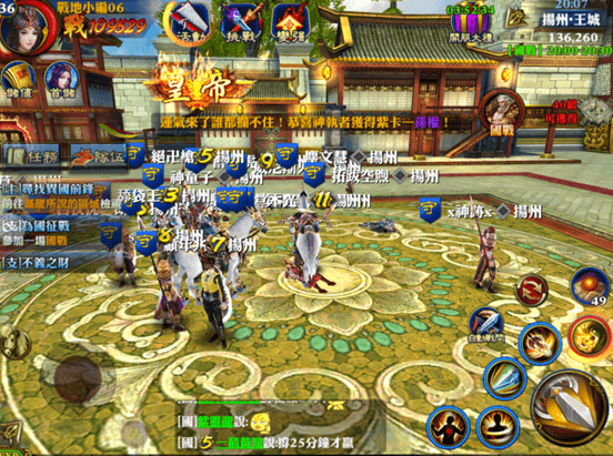 國戰正式開啓式後,小編也來到了王城集合點跟大家集合等待國戰指揮發出指示,而此時,揚州皇帝”絕卍槍”也已經來到集結點進行指揮,看到皇帝的到來,小編也稍微安心了一點。