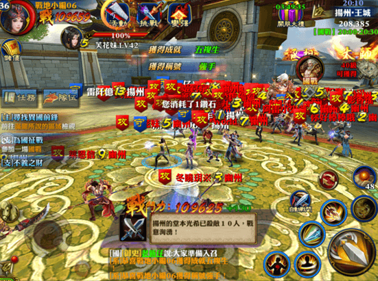 爲了更好的觀看到國戰的整個過程,小編早早的登入上線並且來到王城內看看大家的準備情況。在國戰還沒開始之前,“揚州”國家頻道已經有不少玩家在討論這場國戰。