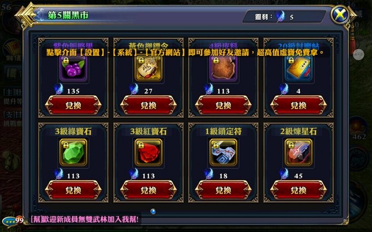 玩家每天可以通過闖天關和錢莊來獲取羽靈,在闖天關的黑市中可以用羽靈來兌換韜略果實。